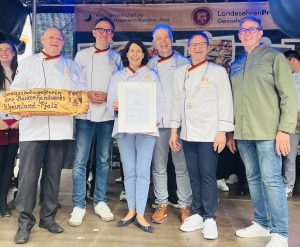 Im Anschluss an die Verleihung durfte sich Ministerin Schmitt selbst über eine besondere Ehrung freuen: Die Bäckerinnungsverbände West und Süd-West ernannten sie zur Genussbotschafterin Rheinland-Pfalz. Damit würdigen wir ihren Einsatz für Regionalität, Tradition und die Stärkung des Handwerks.